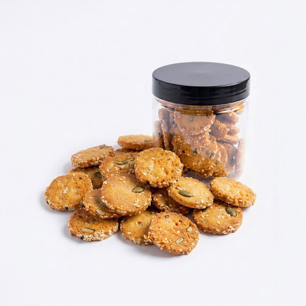 עוגיות פריכות ועשירות בטעם עמוק של גבינת פרמז'ן איכותית, בשילוב קראנצ'י משגע של שומשום וגרעינים קלויים. המליחות העדינה והמרקם הפריך הופכים אותן לפרטנר האולטימטיבי לדרינק שלכם.