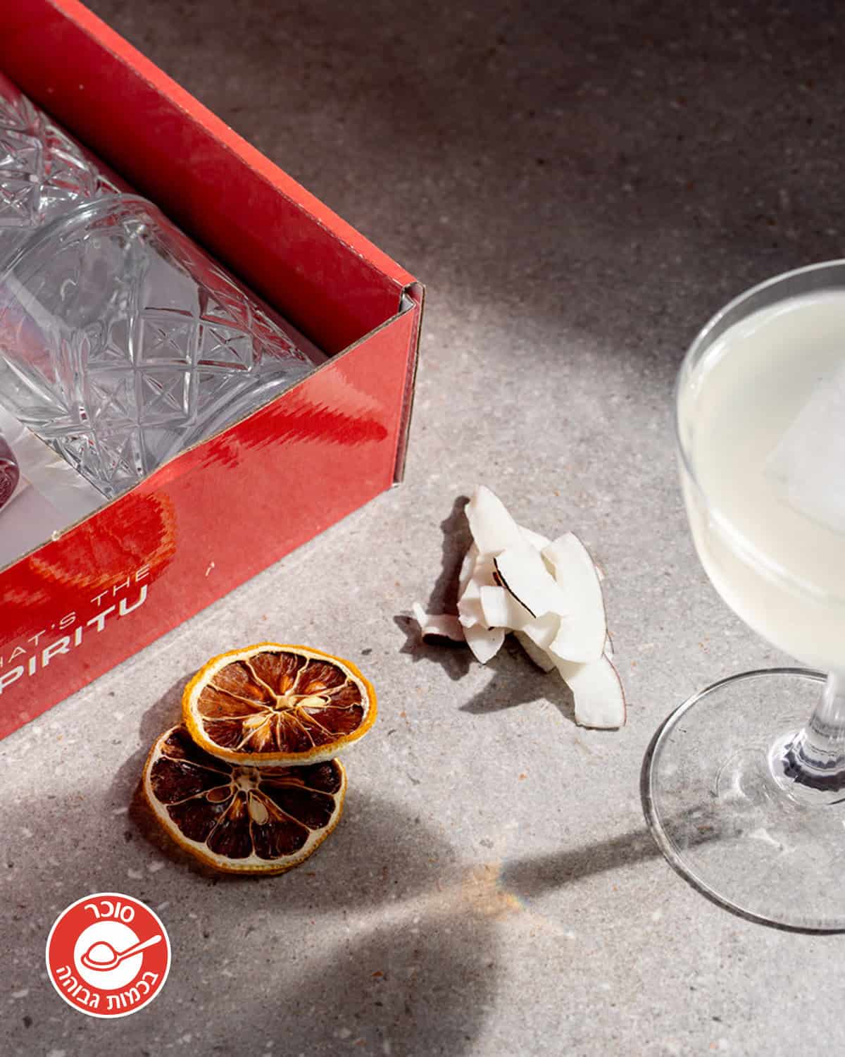 מכיל 2 מוקטיילים (קוקטיילים ללא אלכוהול) מ"ל, 2 כוסות מעוטרות.