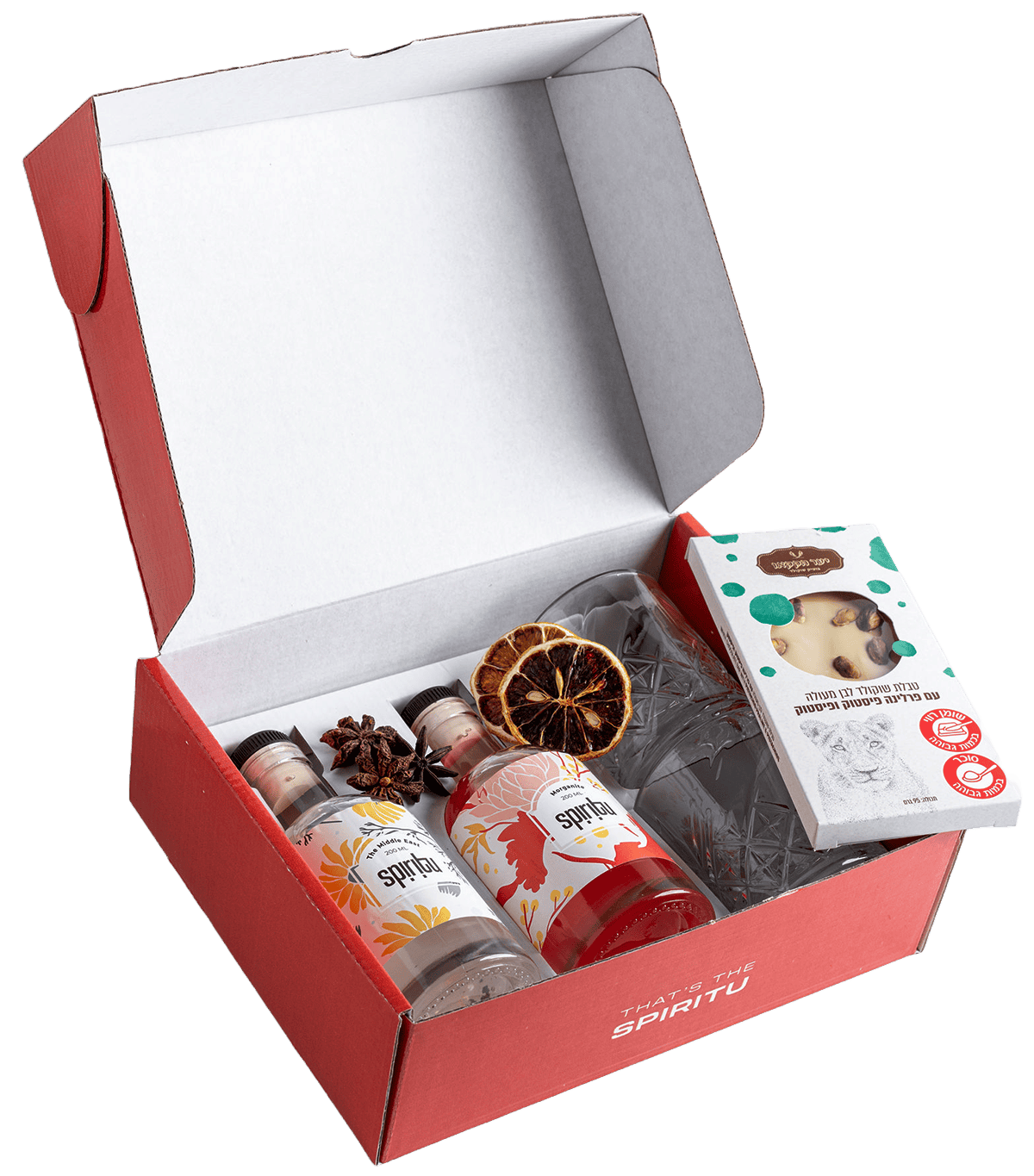 כולל 2 קוקטיילים 200 מ"ל, 2 כוסות מעוטרות, טבלת שוקולד. מתאים לזוג.