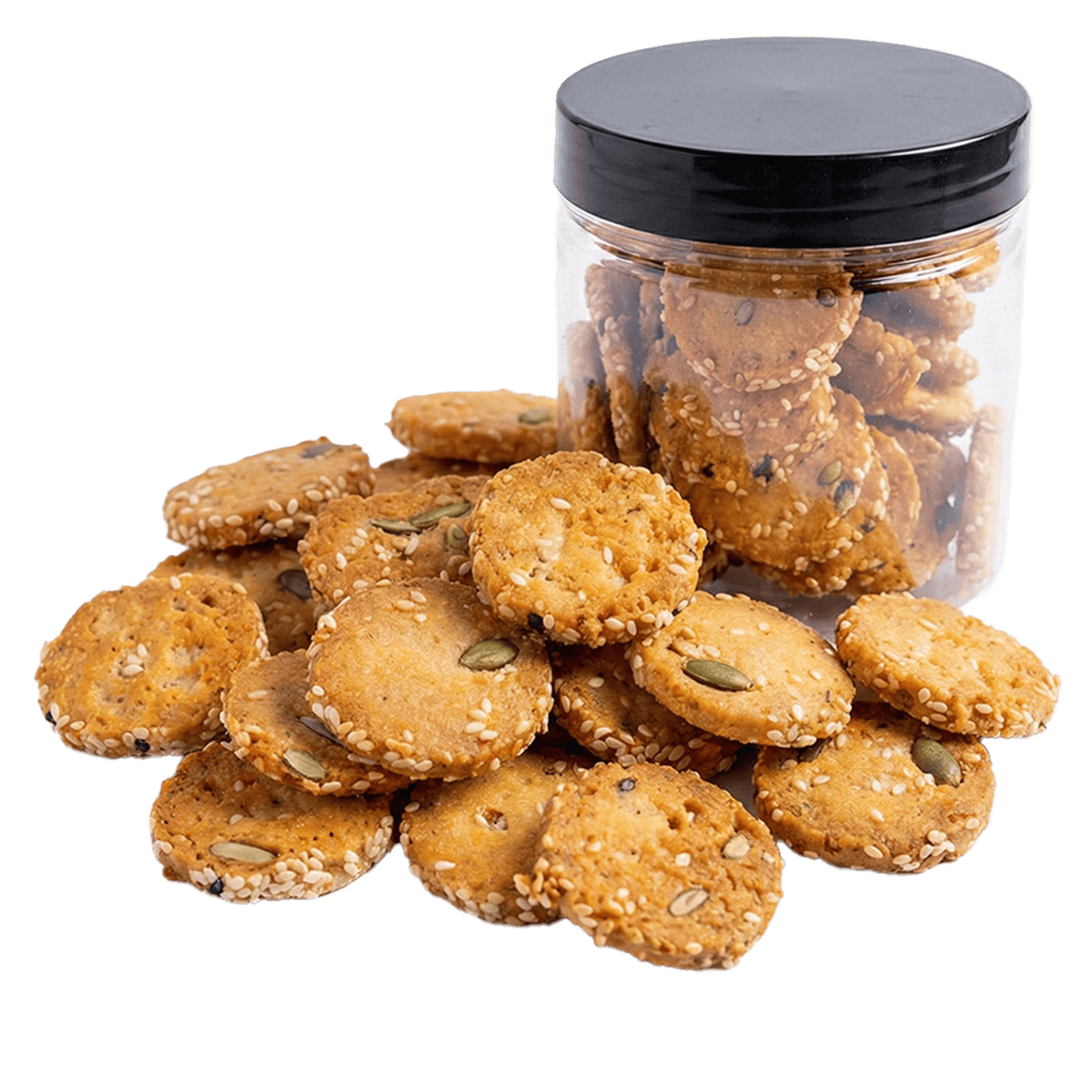עוגיות פריכות ועשירות בטעם עמוק של גבינת פרמז'ן איכותית, בשילוב קראנצ'י משגע של שומשום וגרעינים קלויים. המליחות העדינה והמרקם הפריך הופכים אותן לפרטנר האולטימטיבי לדרינק שלכם.