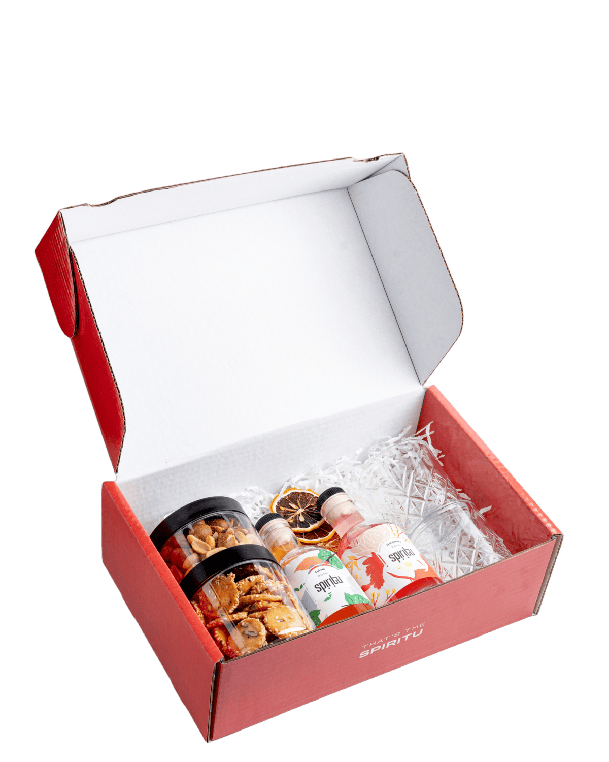 כולל 2 קוקטיילים 200 מ"ל, 2 כוסות מעוטרות, עוגיות פרמזן, מיקס פיצוחים. מתאים לזוג.